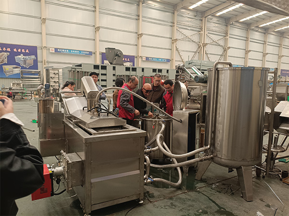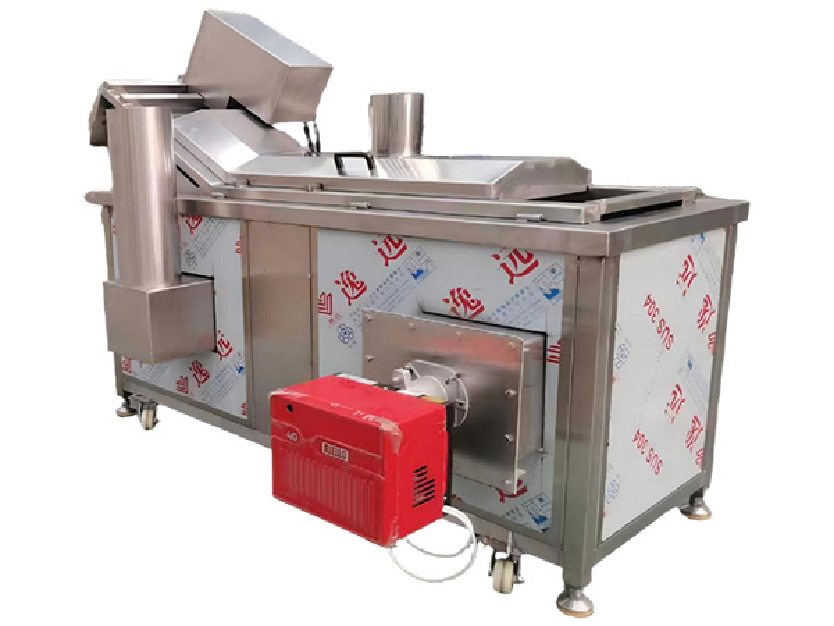 This small continuous fryer system consists of an automatic fire extinguishing device, an oil filter, and an oil storage tank. The automatic fire extinguishing device can extinguish oil fires instantly, eliminating the risk of fire. The oil filter continuously filters residues, ensuring consistent color and flavor of fried products and reducing harmful substances. This guarantees oil quality, ensures high output during continuous operation, and the oil storage tank facilitates oil changes and replenishment, reducing waste and comprehensively lowering oil consumption and labor costs.